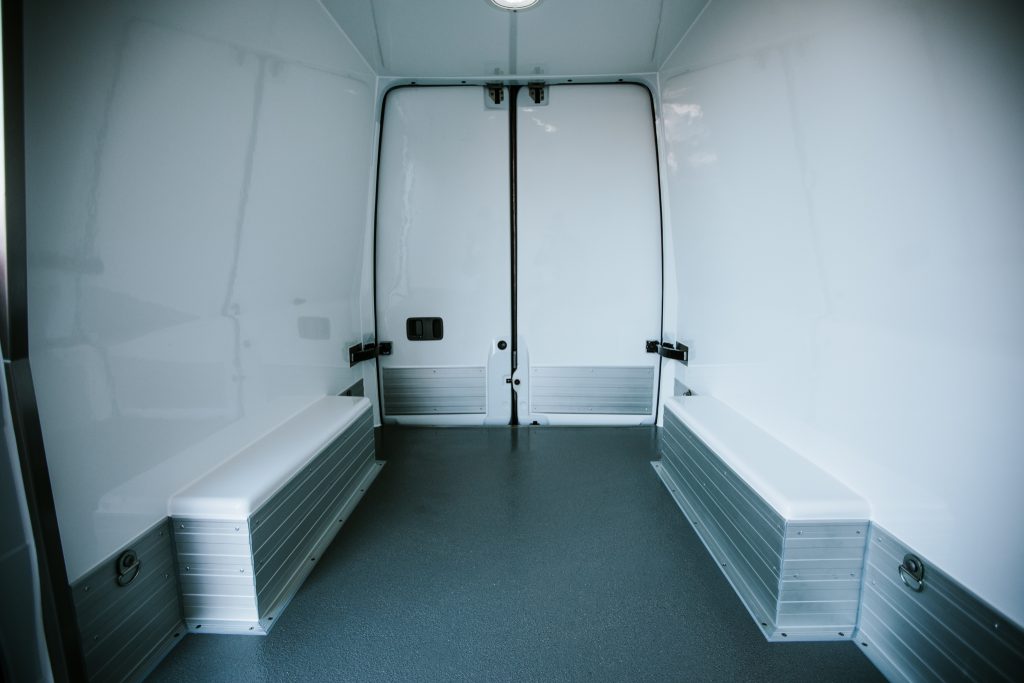 Beim Ausbau vom Transport-, od. Kühlbereich muss man in Abhängigkeit der Ware, die man transportieren möchte, die Ladefläche entsprechend ausbauen. So bieten sich bei Medikamenten und chemischen Produkten Regale und Fächer an. Möchte man Fleisch transportieren, bietet sich je nach Fleischgröße der Ausbau mit Haken an. Je nach Größe vom Kühlbereich muss man hier auch eine Beleuchtung berücksichtigen, das gilt gerade dann, wenn man den Kühlbereich betreten kann. Welche gesetzlichen Regelungen man beim Umbau zu einem Kühlwagen beachten muss, hängt stark von der Ware ab. Die Bandbreite reicht hier von einer DIN-Norm zum Ausbau von Kühlwägen bis hin zur Lebensmittelverordnung.